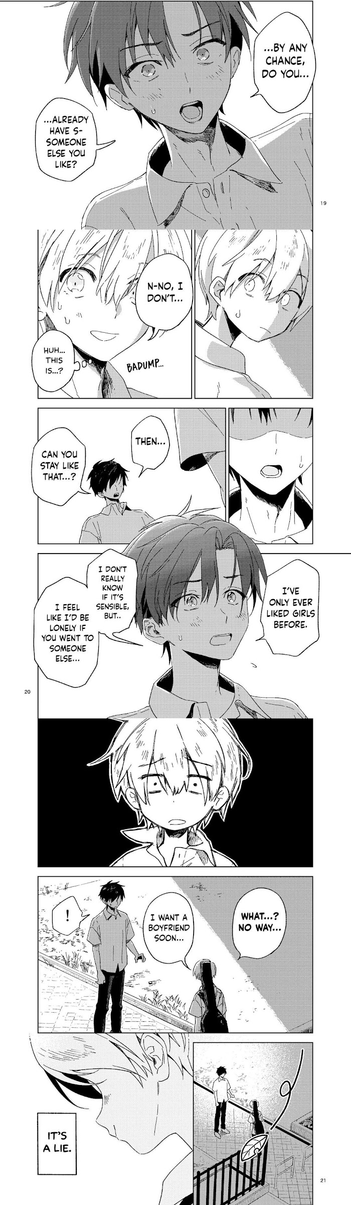 Aomi confesses to a boy from the same band, and when he gets rejected, he quickly tries to put it behind him and move on. But when Yuuma, the boy he confessed to, follows up with an unexpected response, how does Aomi deal with the situation?Original Webcomic