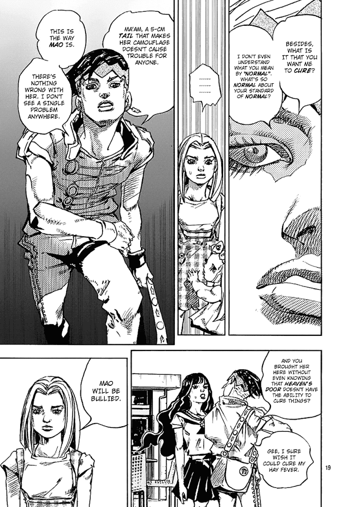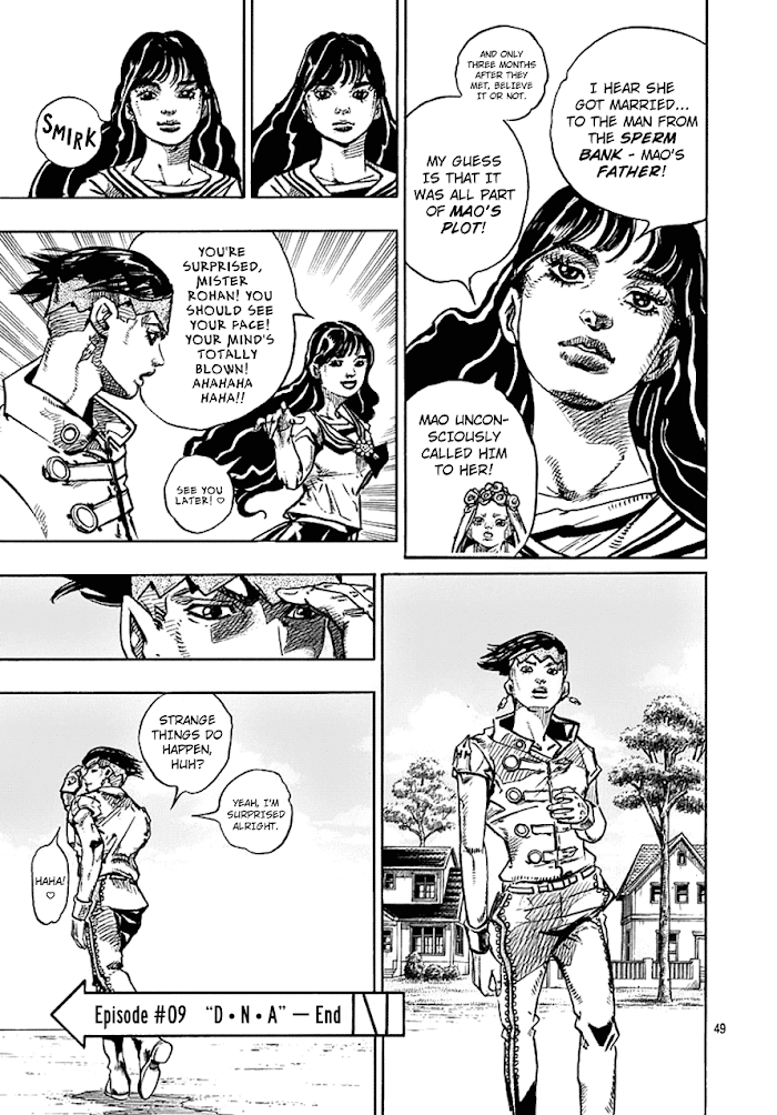 Thus Spoke Kishibe Rohan: Episode 6 - Poaching Reef manga summary: The spinoff will focus on Rohan Kishibe, an eccentric mangaka that appeared in Part 4 of Jojo's Bizarre Adventure, Diamond is Unbreakable.The story begins with Rohan Kishibe being requested by the cook of the town of Morio, possibly Tonio Trussardi. Rohan is asked by Tonio to retrieve mysterious ingredients lying in the ocean of Morio.