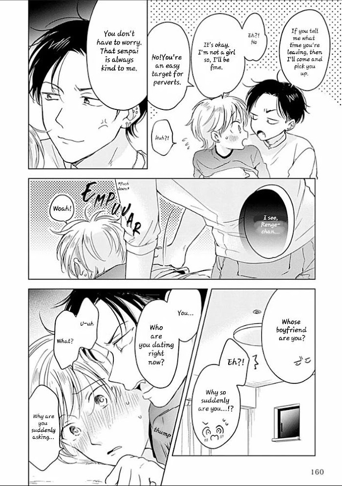 How could I not fall in love with such a cute devoted bottom!!! Two university students, a player and a crybaby with 0 experience with love. A love story so pure and hearthwarming you'll be cheering for them before you know it. Renge starts talking to Shirou who is famous at his university for being a player. He was able to quickly become friends with Shirou but for Renge, who was trying to make a fresh start and doesn't know about the ways of the world, the world of party people it's full of things he doesn't understand...On top of that, he can't help but being flustered by Shirou's every action!! "Count to five slowly. And while you do that I'll be putting it in little by little."