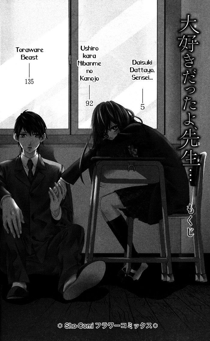Toraware Beast manga summary: Gotou Shiori is known as the 'perfect lady' and looks 'experienced'. The truth is, she isn't as 'perfect' or 'experienced' as it seems! She has never had a boyfriend and is a major Otaku! One day she's at a bookshop and the creepy Otaku Megumu Kajo, finds out her secret. To make sure he doesn't tell anyone that she is an Otaku too, she has to join the Drama Club. ~LB