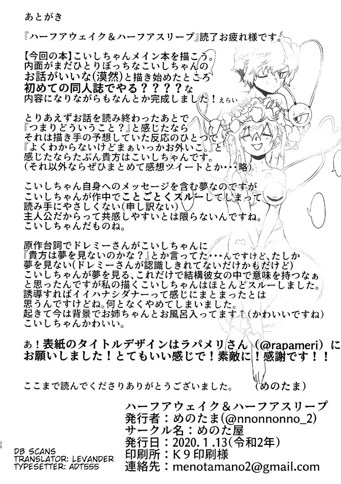 Touhou - Half awake & half asleep (Doujinshi) summary is updating. Come visit vymanga.net sometime to read the latest chapter of Touhou - Half awake & half asleep (Doujinshi). Hope you enjoy it.