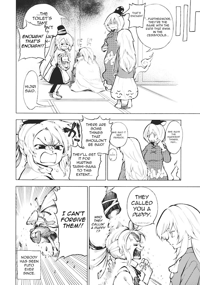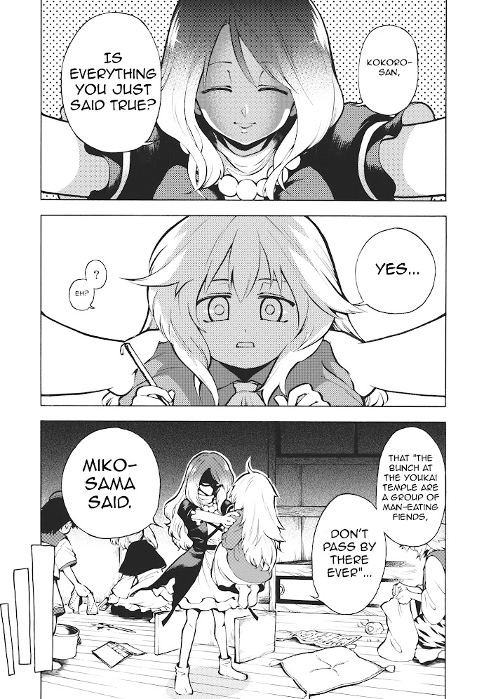 Kokoro caused a fight between Hijiri and Miko, which she believes to be caused by her immature emotions. To develop her immature emotions she seeks help from a devious miko.