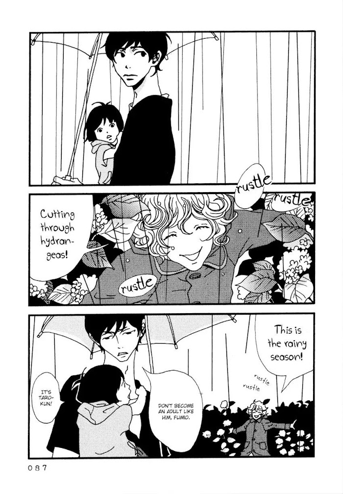 Ever since Tsubaki Tarou, who lives alone in the city, was coincidentally reunited with his childhood friend Hiraiwa who is now divorced (with a child), his life started to subtly change. Tsubaki naturally integrates himself into Hiraiwa and Fumio's family, slowly adding colour to their lives. A heart-warming story depicting the warm interaction between people and their tender lives. (Source: Terrible Trio)