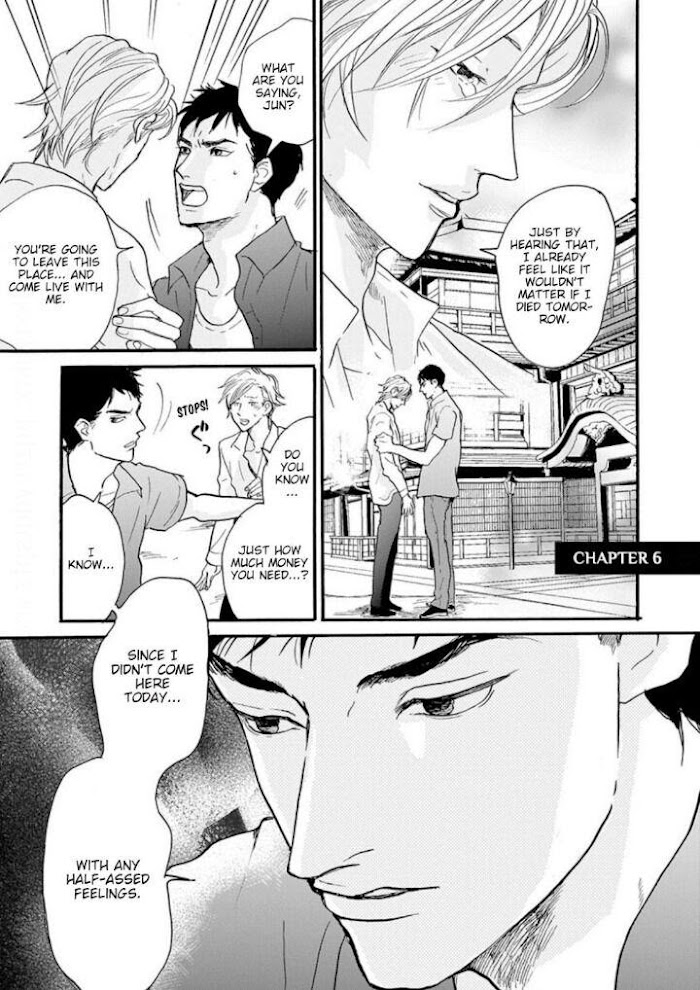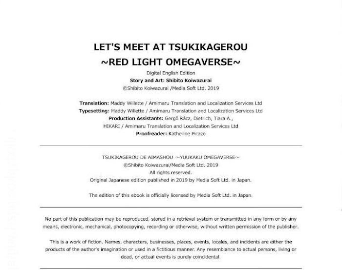 In the Omegaverse, alphas and omegas are born into two different worlds. While alphas excel in life, omegas are treated as scum who lure alphas into mating. Sousuke Tsukigase is a blissfully naive alpha until he falls in love with an omega, Jun. From then on, Sousuke frequents the brothel of Omegas where Jun works and starts questioning himself and the world he knows while he quickly approaches a fork in the road: lead a typical alpha life full of success and stability or take the road less traveled.
