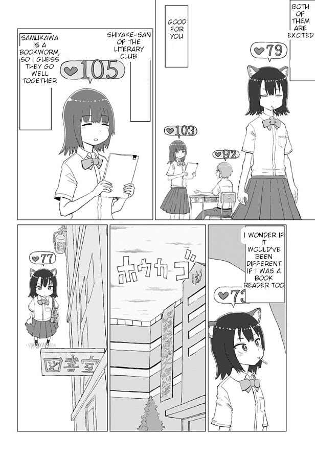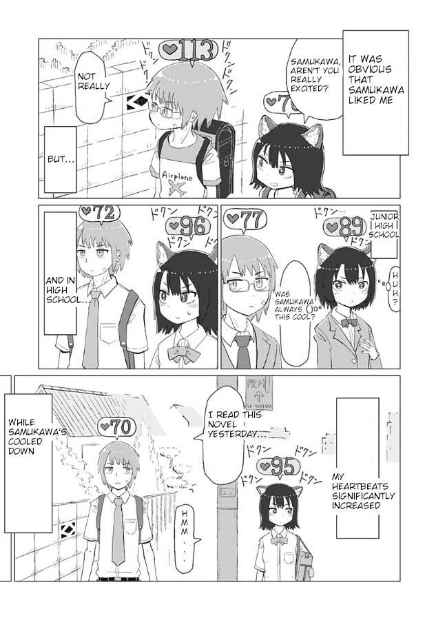 Kamimizo is a high school student who has animal-like ears, which are not visible to anyone else except her. These ears also come with the unique ability of being able to listen to other people's heartbeats. These heartbeats may increase due to various factors, such as exercising, getting surprised, and of course, being in love. Naturally, Kamimizo has to endure hearing the excitement of love every single day in high school. However, her heartbeat also increases due to one specific person: Samukawa, her childhood friend. Despite this, she was not the one who's heartbeat increased first... (Source: MyAnimeList)