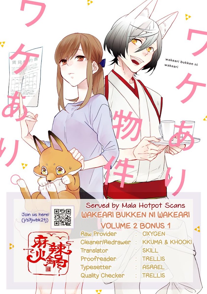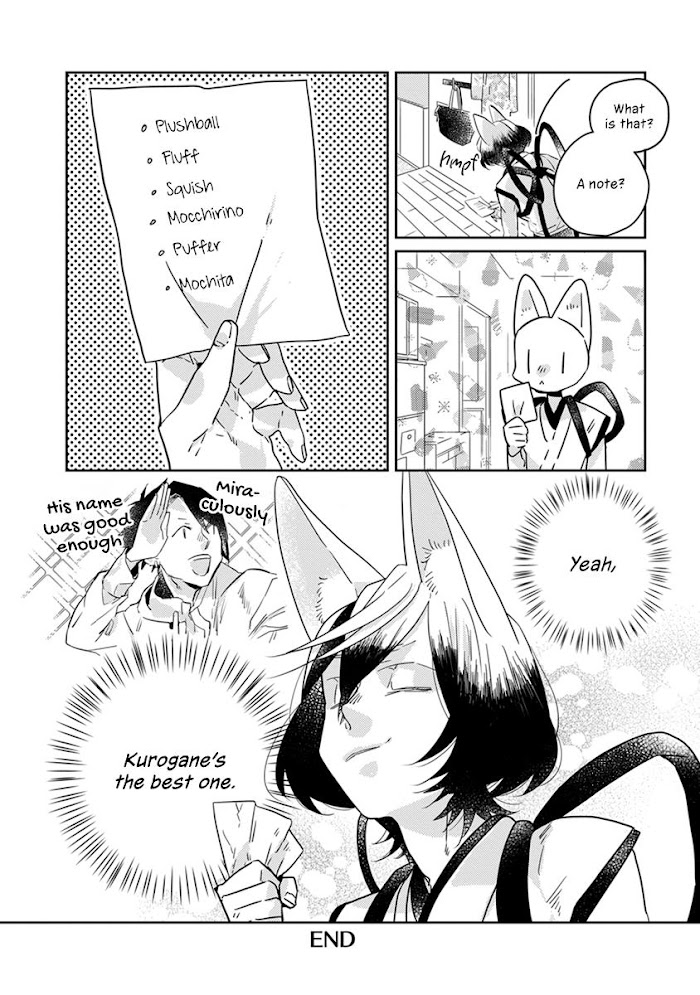 Harumi-chan, a young office worker who always yearned to live alone, begins to do so in a supposedly haunted apartment. Even when her items began to move on their own, or when unusual phemonemons occurred not a single thing phased her. However... a weird guy with fox ears suddenly appeared right before her!? ...or to be more precise, Kurogane, the non-human being who lives in her "haunted" apartment appeared! "Even if he’s not human, there's no way I'm letting him stay rent-free!" Taking turns with the cleaning, laundry, and even the meals -- the two of them, having signed a roommate contract, begin their bizarre, exciting, and fluffy life together!