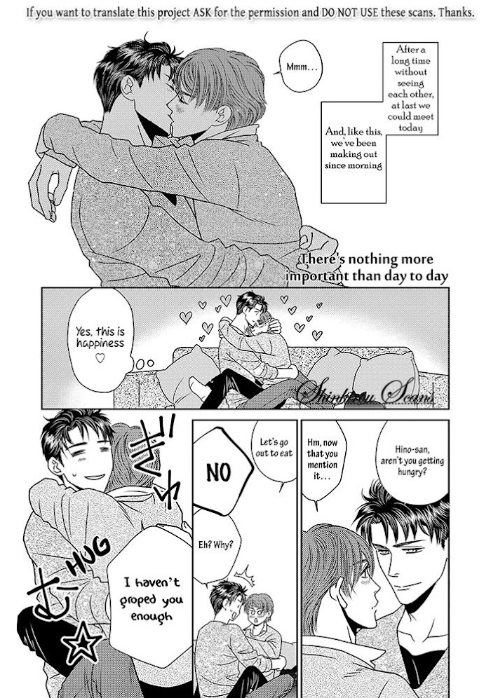 "I hate rainy days 'cause it's always raining when I'm nursing a broken heart." but perhaps that view of Hino-sensei will change after meeting a lawyer and a widower named Masaaki in a bar...?