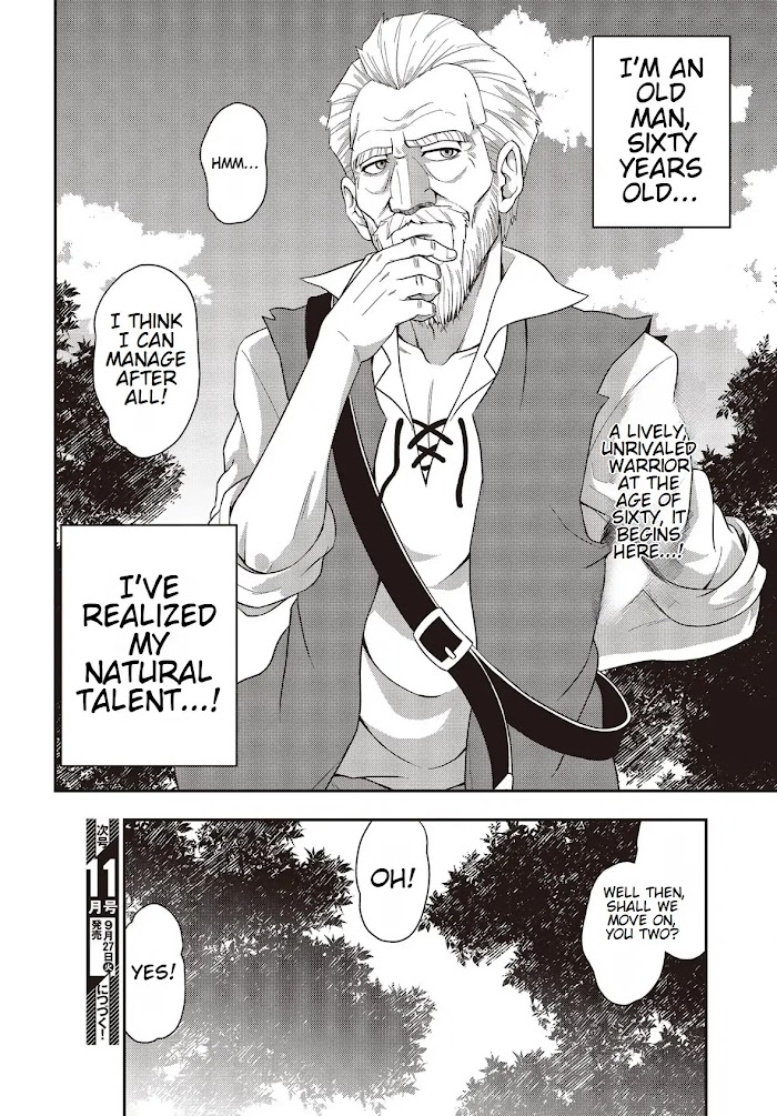 In a world where special abilities called "skills" manifest, sixty-year-old Diru suddenly gains power one day. Unfortunately, it's a combat-focused ability that he struggles to handle now that his physical strength has declined. "I'm already an old man...," he says, but despite his age, he's filled with determination to make the most of his second chance. With his natural talent for charming people and his slightly overzealous sense of justice and kindness, he embarks on a new life, savoring it to the fullest. A man over sixty begins his second lifea life that's not fast but not too slow, gentle yet intense!
