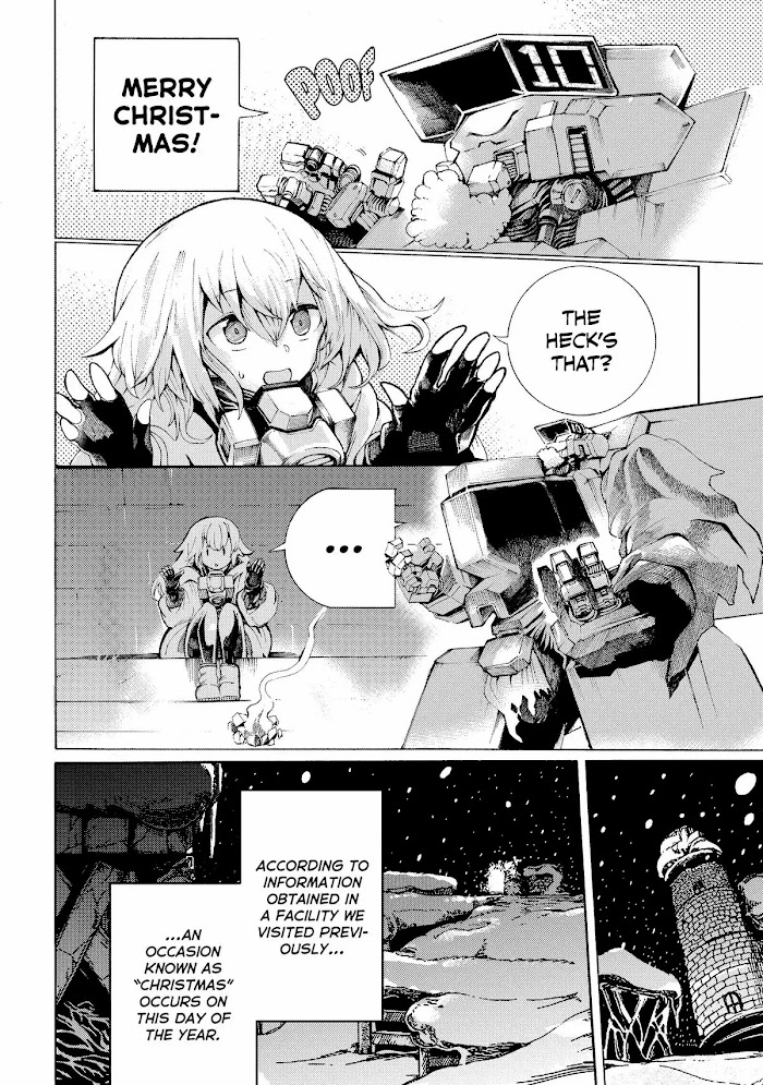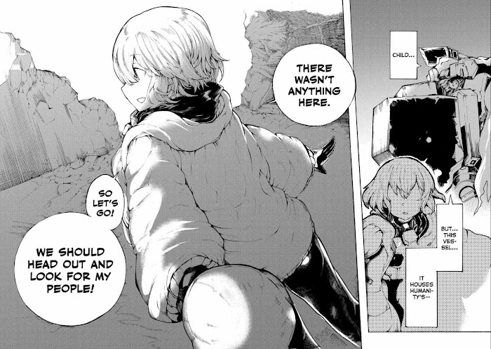 After the end, a young girl and her overprotective giant robot father figure travel the world salvaging supplies and avoiding the threats of the wasteland.A roadtrip-style story about these two characters, the eager scavenger and her clumsy- but loving- mecha pal.