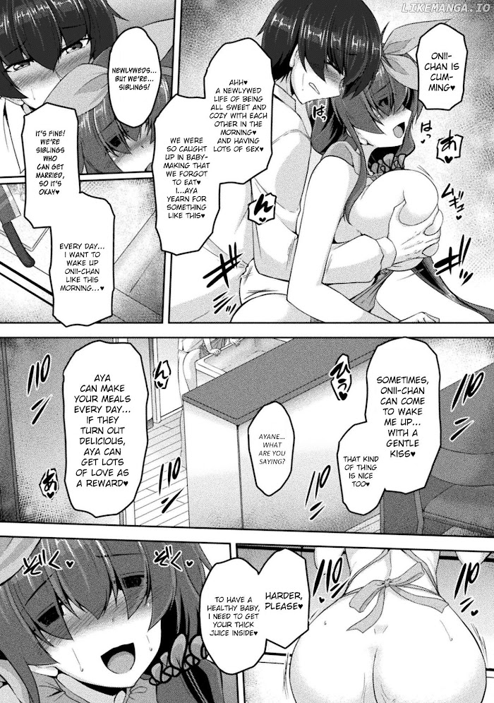 Ayane is in love with Tomoya, Her Onii-chan. But, their childhood friend, Sayaka is trying to split them up. Ayane is not going to let that happen, No one can take Onii-chan away from her. Her plan? She wants Onii-chan only for herself, and she is willing to do everything to make that happen. She wants to have a family with Onii-chan, only the two of them. No one else matters in her little world, and she is going to take care of everyone who tries to interfere.(https://twitter.com/gomzaburo)