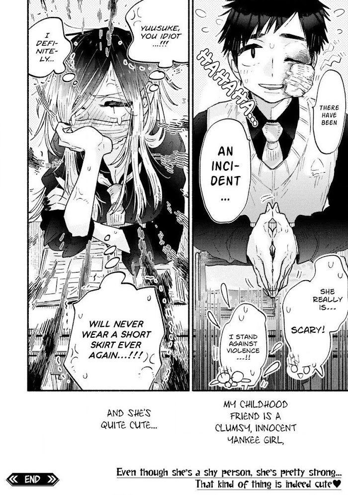 "My childhood friend is... pretty cute." Yuusuke Hiyoshi, an ordinary high school boy, is Meiko Yashiro's childhood friend, the most feared Yankee girl at school! Wanting to help her find some female friends, Yuusuke suggests, "Why don't you try shortening your skirt first?" This is the Innocent Yankee Girl x Honor Student Childhood Friend's cute and complicated love comedy!