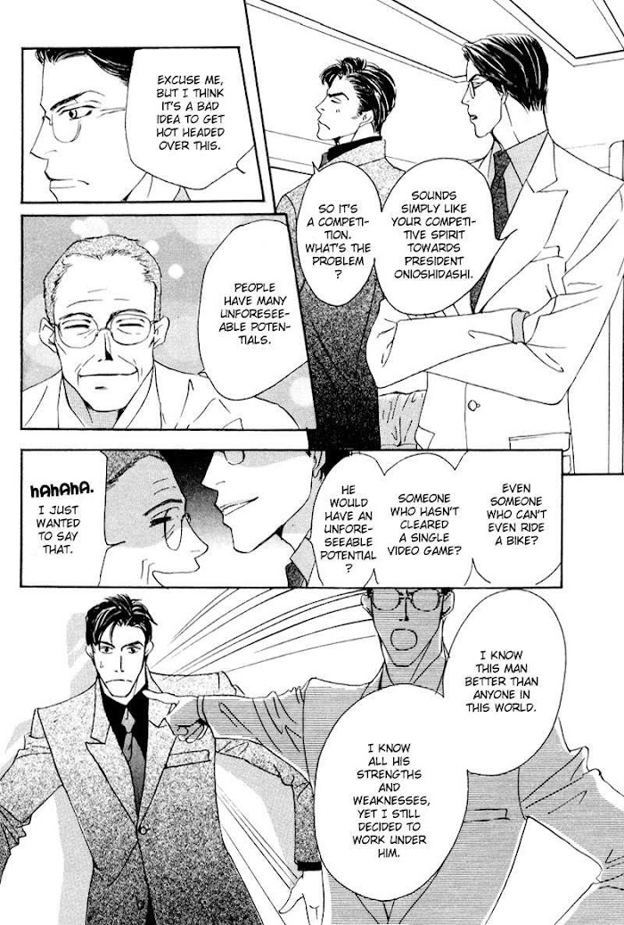 The story focuses on Kusanagi Sou -- a motorcyle racing enthusiast. Although enthusiast may be too soft a word. The boy is obsessed. One day Fuwa stumbles across him sleeping outside the school with bike magazines piled around. He strikes up a friendship in order to stay close to Kusanagi, and pretends that he knows all about bikes. (Source: MangaUpdates)
