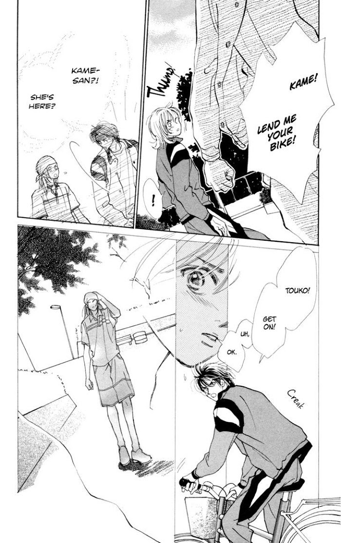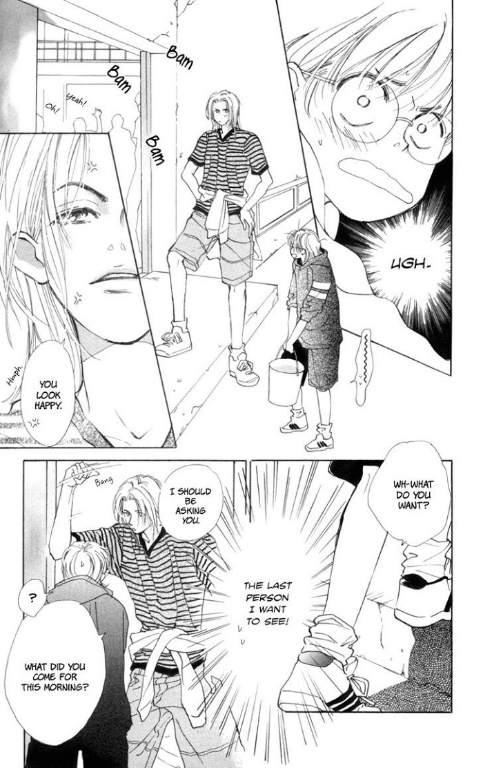 Tohko and Wataru were childhood friends. Wataru was rather wimpy so Tohko always had to protect him from bullies. Then he and his family moved away to Germany, and they lost touch with each other. Years later, Wataru returns to Japan alone for his first year of high school, when Tohko is in her second year of high school. However he's completely different from what he was like before, having grown extremely tall for his age and much more pushy and aggressive. Tohko gets bossed around by him all the time, and even ends up having to make lunch for him everyday, but she doesn't know how to deal with the "new" Wataru. Although he seemed like an angel to her when they were kids, now she sees him as a demon. (Source: Beyond the Sky)