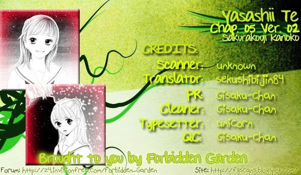 This volume contains five one shots by Sakurakouji Kanako. The second and fourth one shot are related. 1. Yasashii Te 2. Twinkle Lovers Night 3. Okashi no Ie 4. Katakoi Yozora 5. Kobito-san no Hanashi