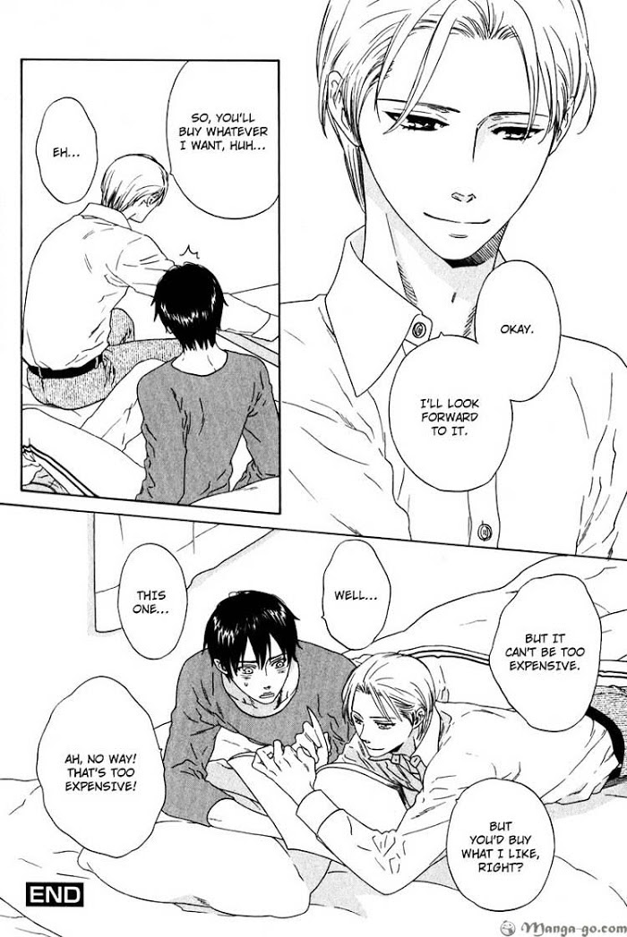 Orito Kouki was working in his mother's pub and saw an unexpected customer, Mitsuru. Mitsuru was the elder brother of his college friend, Yuzuru. Mitsuru looked totally different from Orito's impression of him. Mitsuru suddenly kissed Orito and asked Orito to keep his visit to the pub a secret from Yuzuru. It turned out that their feelings for each other was mutual. But because the brothers were really close, so out of jealousy, Orito told Yuzuru about it. Would the brothers forgive Orito? (Source: MU)