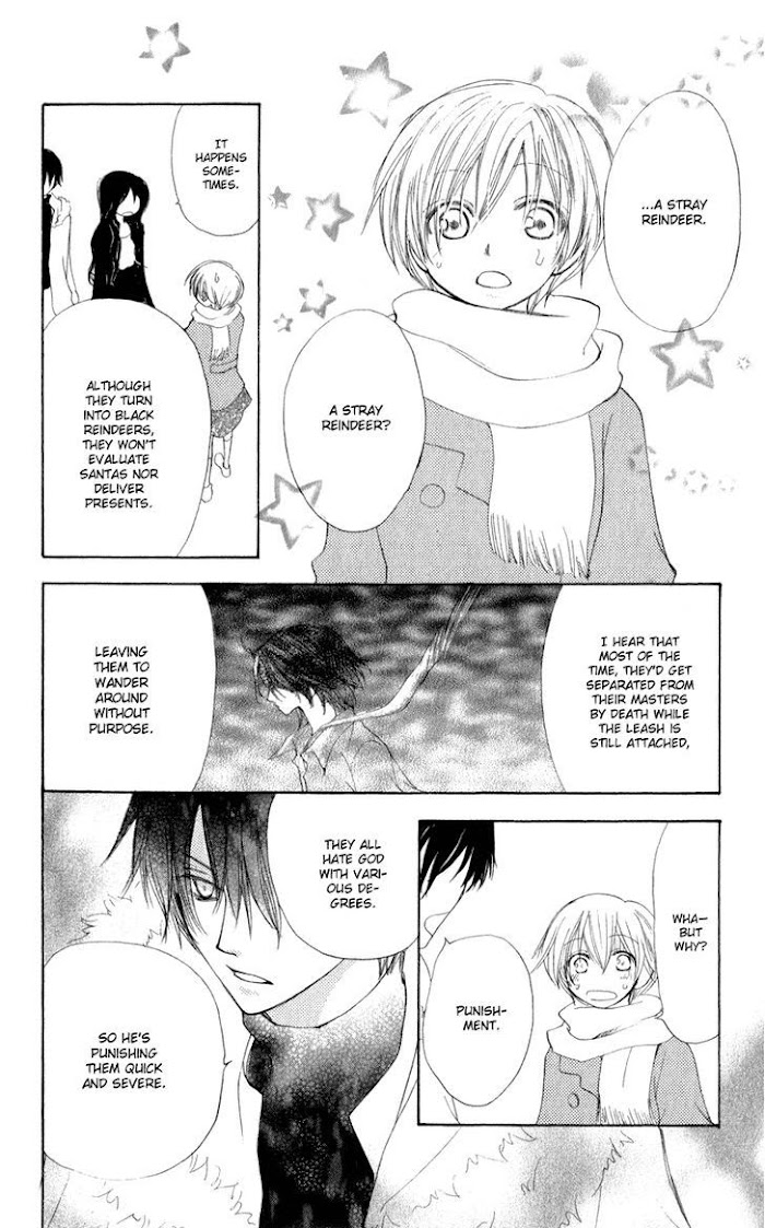 One day when 17-year-old Sagara Kurumi accidently bumps into a guy on the streets, reins suddenly appear and binds them both! What is this?! Things get even more confusing when the boy, Kaito, clasps her hands and calls her his master! When Kaito transforms into a reindeer it just becomes too much for poor Kurumi who's out as a light. But it does indeed seem like Kurumi's a santa and Kaito's her reindeer and that they've got an important job to do on Christmas Eve~ (Source: Dragon Voice Project) Included one-shots: Volume 1: Amai Kamiato Volume 2: Eden no Tobira Volume 3: Penguin Kakumei Side Story